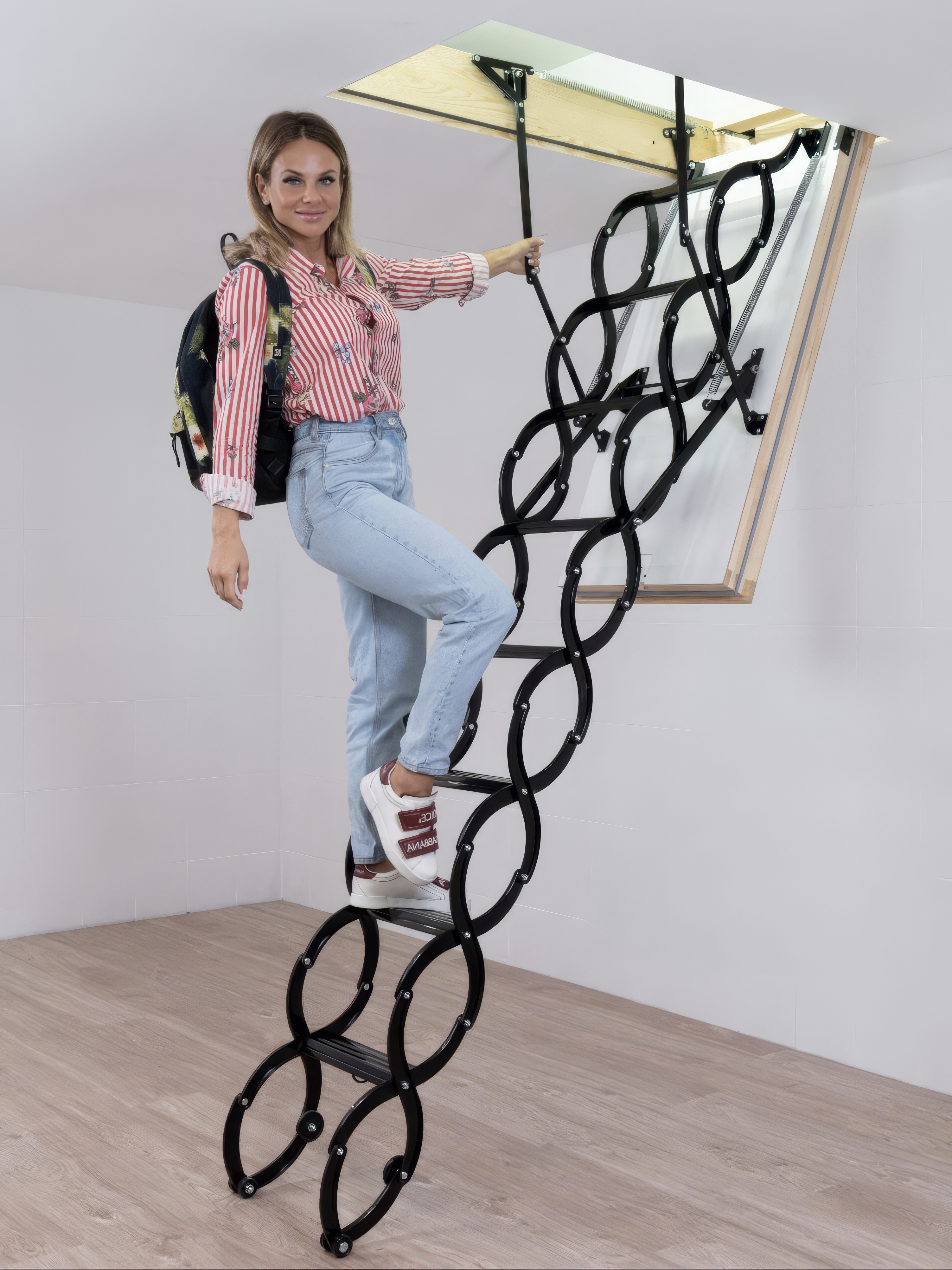 Лестница чердачная раздвижная ножничного типа.